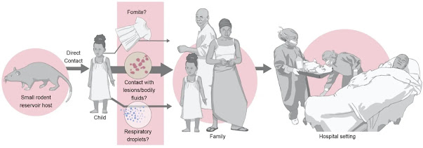 penularan zoonosis MPXV, termasuk kontak langsung dengan hewan mati atau sakit,