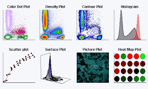 and written to a standardized format (.fcs) data file. Cell populations can be